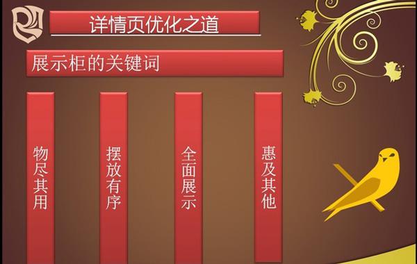 很多小伙伴的详情页做的很随便。是的,别人家爆款详情页做的也很差啊!为什么他们家能卖的那么好。你的宝贝有他们宝贝表现力好吗? 没有那你好不去优化你的详情。详情重点是要抓住买家的痛点,买家所关注什么你就表达什么让买家消除顾虑!光靠美和好看已经打动不了买家了。另外有些产品或者商家可以做有个性的详情页,比喻互动类型的丫,也可以尝试一下相信你的转化会有所提升的。